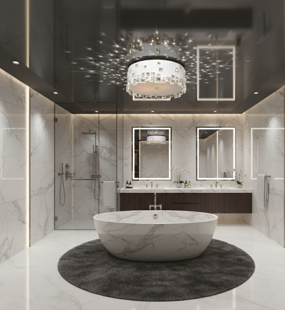 Bring a shining touch to your home with this contemporary flush mounts light. A white finish shade is embedded with square clear and smoke crystals for added radiance and sophistication. Eye-catching and stunning!!! Depending on the color of the light bulbs you can achieve different effect. Dimensions: Diameter: 35cm Height: 20 cm Flush mounts Requires 4 bulbs x40W ( not included)